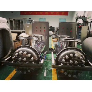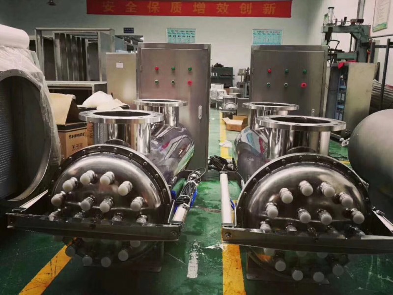 本裝置采取了的高強度無臭氧紫外線殺菌燈和內壁經過特殊處理的微炭臭體不銹鋼筒體,筒體處側特殊拋光處理,使經過預處理的水在流過筒體時受到253.7nm紫外線的足夠線量的照射,具有良好的有效減少了對超純水的影響。