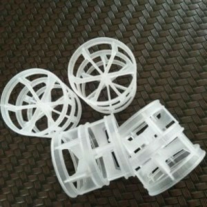 塑料鮑爾環填料是一種高徑相等的開孔環型填料,每層窗孔有5個舌葉,每個舌葉內彎指向環心,上下兩層窗孔的位置相反錯開,一般開孔面積約占環壁總面積的30%左右。具有空隙率大,壓降和傳質單元高度低,泛點高、汽液接觸充分、比重小、傳質效率高等特點。