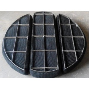 抽屜式除霧器采用HG、T21586-98標(biāo)準(zhǔn),是由若干塊絲網(wǎng)除沫元件構(gòu)成,通過(guò)導(dǎo)軌插入塔體內(nèi)。該除沫器的特點(diǎn)是操作、維修方面,可在塔體外更換除沫元件,適合于硫酸裝置的吸收塔及干燥塔等。