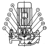 ISG型結構說明: 1.泵與電機同端蓋,軸向尺寸縮短,結構簡單。 2.泵體上設有取壓孔和放水孔。 3.泵體上設有排氣閥,工作前能拐車放泵內空氣。 4.泵體底部設有安裝底板和螺栓孔,保證整體機組安裝穩固。 |