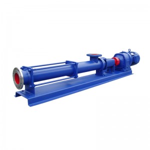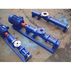 G型單螺桿泵是按迥轉嚙合容積式原理工作的新型泵種,主要工作部件是偏心螺桿(轉子)和固定的襯套(定子)。由于該二部件的幾何形狀,分別形成單獨的密封容腔,介質由軸向均勻推行流動,內部流速低,容積保持不變,壓力穩定,因而不會產生渦流和攪動。每級泵的輸出壓力為0.6Mpa,揚程60m(清水),自吸高度一般在6m,適用于輸送介質溫度80℃以下(要求可達150℃)。因定子選用多種彈性材料制成,所以這種泵對高粘度流體的輸送和含有硬質懸浮顆粒介質或含有纖維介質的輸送,有一般泵種所不能勝任的特點。其流量與轉速正比。傳動可采用聯軸器直接傳動,或采用調速電機,三角帶,變速箱等裝置變速。