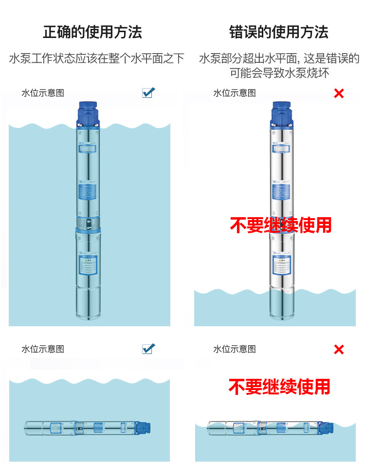 五、水泵的一、二級(jí)葉輪應(yīng)浸入水位1m以下。運(yùn)轉(zhuǎn)中應(yīng)經(jīng)常觀察井中水位的變化情況。