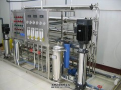 4、原水箱→原水增壓泵→石英砂過濾器→活性碳過濾器→軟水器→保安過濾器→反滲透系統→中間水箱→水泵→EDI裝置→純水箱→純水泵→紫外線殺菌器→0.2或0.5μm精密過濾器→用水對象(≥15MΩ.CM)(最新工藝)。