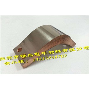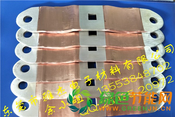 東莞市雅杰電子材料有限公司銅箔軟連接采用高分子擴散焊工藝,將接觸面的多層銅箔融解在一起,改變其分子結構,凝固成銅塊后再進行后續加工。熱融焊后的銅箔軟連接產品進行鈍化處理,并對表面及周邊區域的毛刺、污漬、腐蝕、凹凸、劃痕、抗氧化、水洗、烘干、成型、包裝等進行處理。產品搭接面可按客戶需求鉆孔。軟連接部位可整體或局部包覆絕緣套管。銅箔軟連接可整體或局部鍍錫、鍍銀或鍍鎳,滿足客戶不同需求。