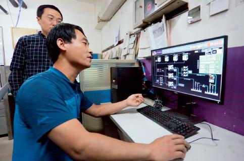 東方低碳的運營人員通過電腦終端,監控酒店內經過節能改造后的整個供能、供水系統。 (《中國經濟周刊》攝影記者 胡巍 攝)