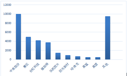 圖表:截止2017年國內(nèi)主要背板生產(chǎn)企業(yè)產(chǎn)能(單位:萬平米)
