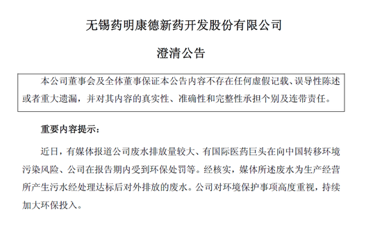 近日,有媒體報(bào)道公司廢水排放量較大、有國(guó)際醫(yī)藥巨頭在向中國(guó)轉(zhuǎn)移環(huán)境污染風(fēng)險(xiǎn)、公司在報(bào)告期內(nèi)受到環(huán)保處罰等。經(jīng)核實(shí),媒體所述廢水為生產(chǎn)經(jīng)營(yíng)所產(chǎn)生污水經(jīng)處理達(dá)標(biāo)后對(duì)外排放的廢水。公司對(duì)環(huán)境保護(hù)事項(xiàng)高度重視,持續(xù)加大環(huán)保投入。