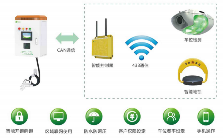 ? 概述:系統(tǒng)中智能地鎖、車位檢測模塊和充電樁通過智能控制器聯(lián)動。智能地鎖可通過手機(jī)充電操作端開啟,車位檢測模塊檢測到車輛正確停放后開放充電樁使用權(quán)限,從而車主可通過手機(jī)端啟動充電。車輛充電完畢,且車位檢測模塊檢測到車輛駛離后智能地鎖自動升起,無需人工干預(yù)。車主在后臺管理端可設(shè)置充電車位的客戶使用權(quán)限,以及車位占用費(fèi)用,只有指定權(quán)限客戶才能開啟地鎖啟動充電。