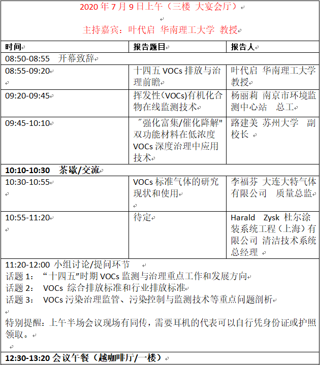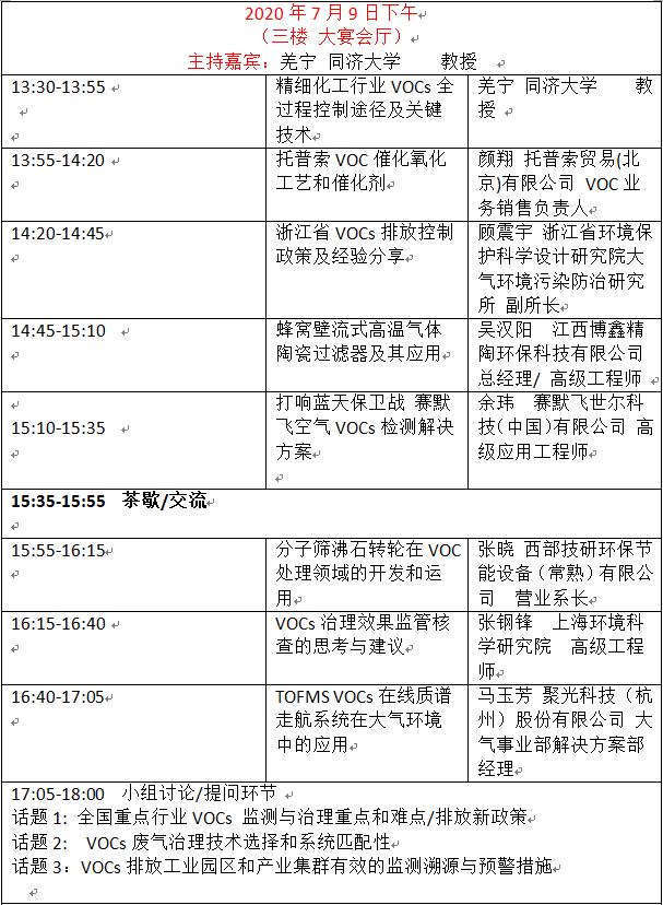 2020中國國際VOCs監測與治理峰會最新議程重磅揭秘