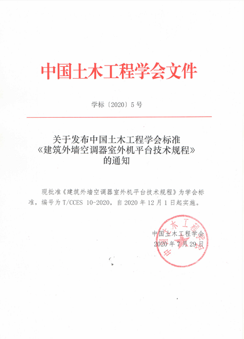 為響應(yīng)建設(shè)部《對(duì)十三屆全國(guó)人大一次會(huì)議第7898號(hào)建議的答復(fù)》意見精神,由中國(guó)建筑科學(xué)研究院和廣東美的制冷設(shè)備有限公司牽頭主編,清華大學(xué)、廣東省建筑科學(xué)研究院、中國(guó)建筑設(shè)計(jì)院有限公司、廣州城建開發(fā)設(shè)計(jì)院有限公司、建研科技股份有限公司、中國(guó)人民大學(xué)、北京化工大學(xué)、西南交通大學(xué)、廣東省制冷學(xué)會(huì)、中國(guó)家用電器研究院等機(jī)構(gòu)以及國(guó)內(nèi)多家空調(diào)設(shè)備企業(yè)參加編制了T/CCES 10-2020《建筑物外墻空調(diào)室外機(jī)平臺(tái)技術(shù)規(guī)范》。自標(biāo)準(zhǔn)立項(xiàng)預(yù)研開始,到2019年轉(zhuǎn)入正式立項(xiàng),經(jīng)過(guò)3年的努力于2020年7月29日獲批發(fā)布,以較強(qiáng)的操作性和參考性為原則,規(guī)范空調(diào)室外機(jī)平臺(tái)的設(shè)計(jì)、施工、驗(yàn)收、安裝及維護(hù)等各環(huán)節(jié),確保空調(diào)室外機(jī)安裝安全、維修方便、散熱良好和運(yùn)行高效。