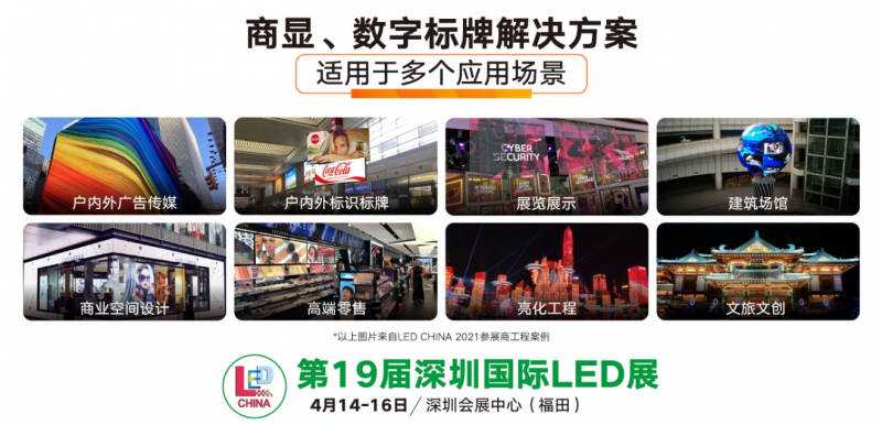 第19屆深圳國際LED展(LED?CHINA?2021)將于4月14-16日,于深圳會(huì)展中心(福田)拉開帷幕。預(yù)計(jì)超1,200個(gè)參展品牌,40多場高端會(huì)議,將帶您深入了解當(dāng)下數(shù)字標(biāo)識(shí)及商業(yè)顯示的最新趨勢。在數(shù)字化時(shí)代,有何新品科技能使商業(yè)空間重塑升級(jí)?如何更好利用商業(yè)設(shè)計(jì)、數(shù)字服務(wù)、智能體驗(yàn)等進(jìn)行視覺營銷提升訪客體驗(yàn)?一切盡在LED?CHINA?2021! 行業(yè)觀眾可提前注冊(cè),免費(fèi)進(jìn)場參觀,體驗(yàn)行業(yè)年度科技盛宴。(注冊(cè)通道:https://dwz.cn/jg96mSoj)