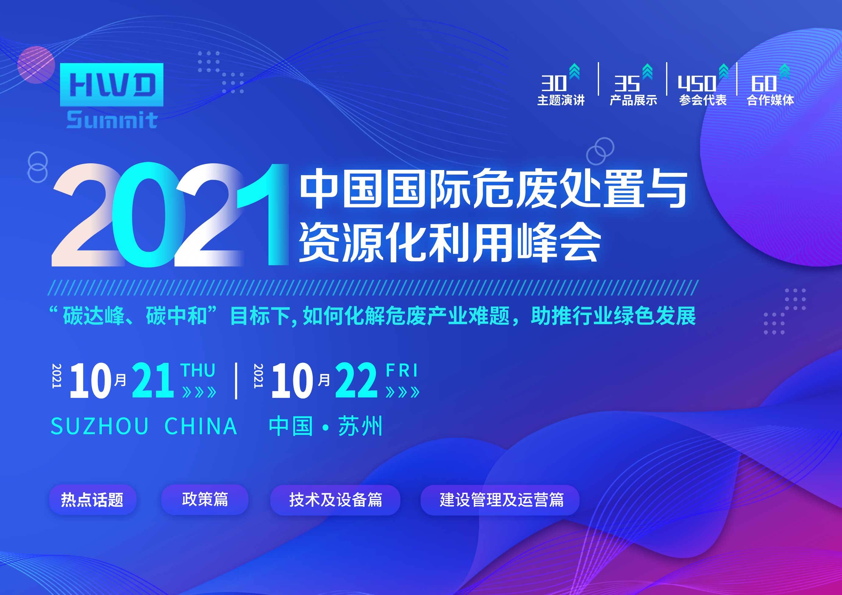 2021中國國際危廢處置與資源化利用峰會(huì)將于10月21-22日在蘇州開幕 ,將有450位來自政府單位,危廢處置單位,EPC,園區(qū)和產(chǎn)廢單位的參會(huì)代表現(xiàn)場(chǎng)交流,來自生態(tài)環(huán)境部、中國標(biāo)準(zhǔn)化研究院、環(huán)境科學(xué)研究院、環(huán)境保護(hù)產(chǎn)業(yè)協(xié)會(huì)等專家將現(xiàn)場(chǎng)解讀危險(xiǎn)廢棄物領(lǐng)域最新法律法規(guī)、政策標(biāo)準(zhǔn),分享行業(yè)最新技術(shù)及發(fā)展趨勢(shì),以及危廢處置相關(guān)最新動(dòng)態(tài)。