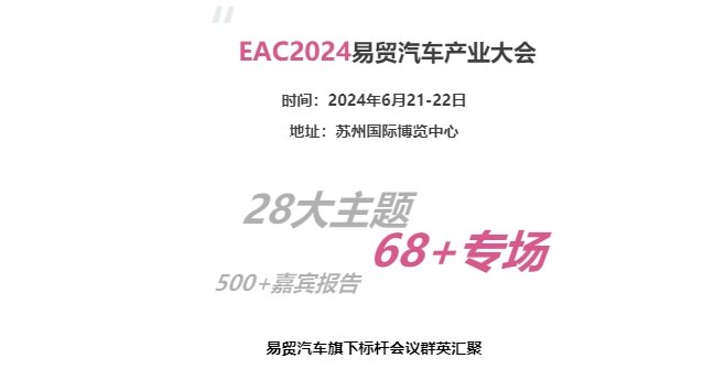 EAC2024易貿(mào)汽車新能源&智能座艙&自動駕駛產(chǎn)業(yè)大會暨同期EAC易貿(mào)汽車產(chǎn)業(yè)展大會官網(wǎng): https://eac.ienmore.com/