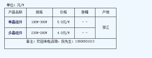10月9日浙江杰美新能源有限公司光伏組件報價