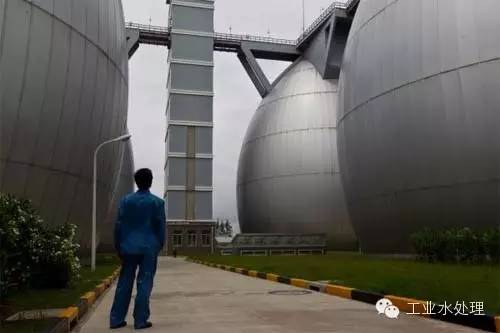 上海白龍港污水處理廠,一名工人走過卵形污泥消化池。寇聰澎湃資料