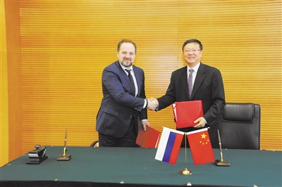 會后,環境保護部部長陳吉寧與俄羅斯自然資源與生態部部長東斯科伊簽署會議紀要。 本報記者賈繼恒攝