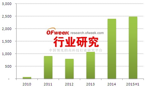 圖表1:2011年-2015年上半年英國(guó)光伏新增裝機(jī)情況(單位:MW)