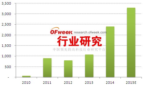 圖表3:2010年-2015年英國(guó)光伏電站市場(chǎng)裝機(jī)容量預(yù)測(cè)(單位:MW)