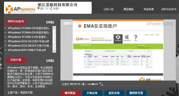 其中,昱能科技就微型逆變器以及監控系統進行了展臺演講,在演講中主要介紹了APsystems產品的性能以及技術特點。當然,還有昱能科技此次展會的ArrayApp以及EMA App等特色產品。