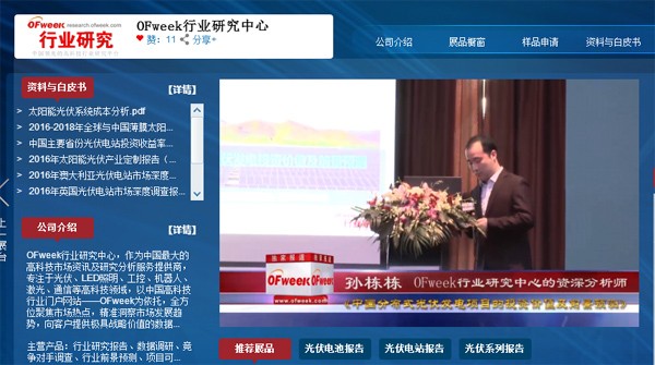 OFweek行業研究中心的資深分析師孫棟棟則以《中國分布式發電項目的投資價值及前景預測》為主題,進行了現場視頻演講。