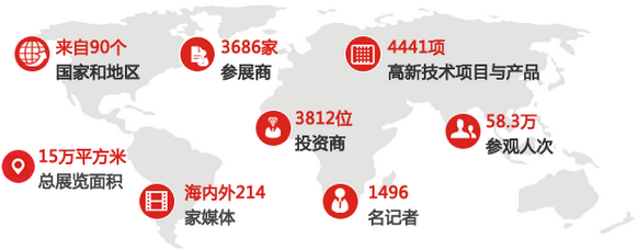 2015年舉辦的第十七屆高交會總展覽面積達15萬平方米,有28個國家和地區的128個代表團、3686家參展商、16825個項目參加展示、交易和洽談,來自90個國家和地區的58.3萬人次觀眾參觀了主會場和分會場,214家海內外媒體的1496名記者參與了本屆高交會的報道。