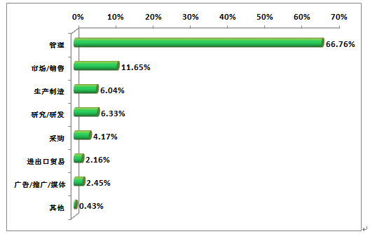 上屆高交會吸引了來自海內外的近58.3萬人次專業觀眾參觀,其中新能源、節能技術、環境保護、新材料、電力等領域的節能環保展、新能源展專業觀眾約20%,即超過11.2萬人次。圖1:專業觀眾人氣指數達到238,即平均每天每個展位共接待了238位專業觀眾。圖2:接近七成的專業觀眾屬于管理人員。