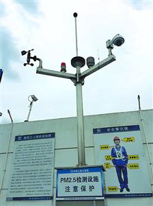 軌道交通14號線金粵路地鐵站的施工工地中,每個入口處都有一臺頗為“罕見”的PM2.5檢測設(shè)備,小小的白色圓柱形物體看似“貌不驚人”,卻可以智能監(jiān)測空氣中的粉塵濃度:當(dāng)施工工地內(nèi)的PM2.5超過75時,與其連接的工地內(nèi)部配備的所有噴淋設(shè)備都會自動打開,快速釋放大量水汽抑制作業(yè)揚塵,降低工地的粉塵污染。