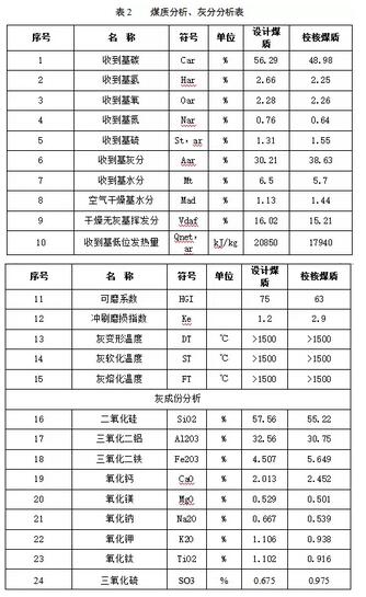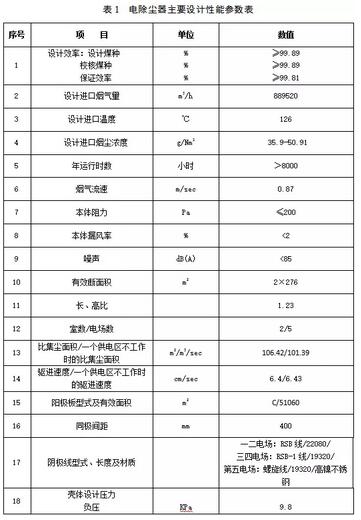 2.2電除塵器主要設計性能參數及煤質、飛灰成分分析