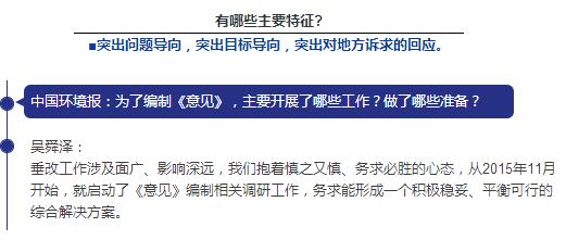 最后,做了大量的部門協調、政策研擬等工作,幾十次易其稿,才完成《意見》的編制。應該講,這次前期工作扎實細致,謀定而后動,有堅持有創新,有關部門給了大力支持。《意見》出臺凝聚了各方智慧,體現了黨中央、國務院對環境保護的高度重視,對改善環境質量的殷切期待。