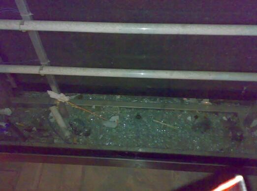 下面一張照片是作者在上海徐家匯鬧市區(qū)的一個(gè)公交車(chē)站所拍攝的,圖中是一個(gè)被打碎了的廣告牌,日光燈的玻璃碎片一大堆,而且作者每天走過(guò)那里,居然兩個(gè)多星期無(wú)人處理。可見(jiàn)有關(guān)部門(mén)對(duì)于日光燈破碎后的危害性也是一無(wú)所知。