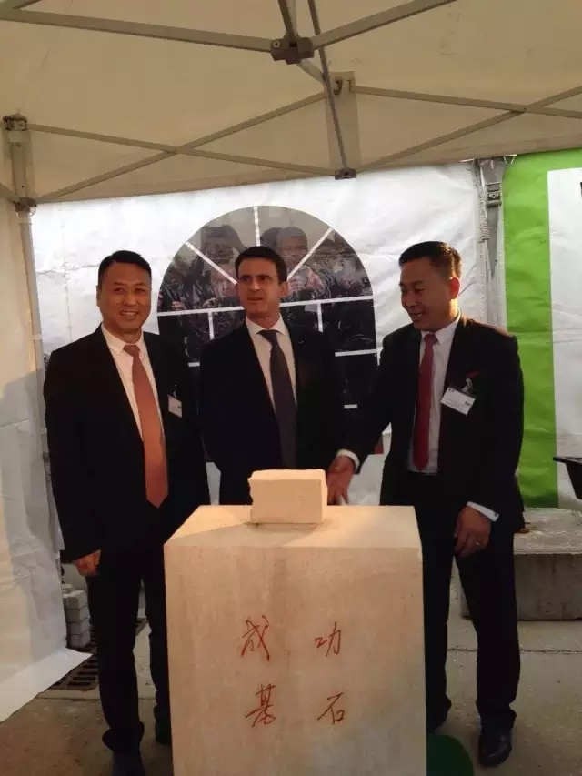 法國總理瓦爾斯、中國駐法大使翟雋與上海儀電飛樂音響集團負責人一起為工廠奠基