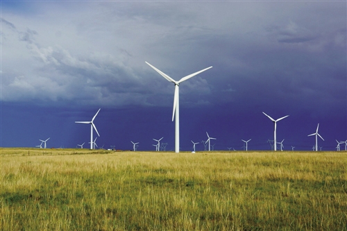 近年來通遼新能源發電取得了長足進步。如今,通遼從南到北,共分布著33座風電場,構成了一條綿延300多公里的風光產業帶。圖為通遼風電場一角。