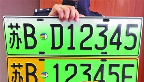 記者在現場看到,小型新能源汽車號牌底色采用漸變綠色,大型新能源汽車號牌底色采用黃綠雙拼色。新能源汽車號牌號碼由5位升為6位,比普通汽車號牌增加一位。“號牌號碼容量增大、資源更加豐富,編碼規則更加科學合理,可以滿足‘少使用字母、多使用數字’的編排需要。”車管所所長孫育華說,小車號碼為蘇B之后接字母“D”,再接5位數字;公交車等大型車的號碼為蘇B之后接5位數字,再接“F”。其中“D”代表純電動汽車,“F”代表非純電動汽車、插電式混合動力和燃料電池汽車。數字號段使用完畢后,將變更第一順位的數字為字母,產生新的號段。
