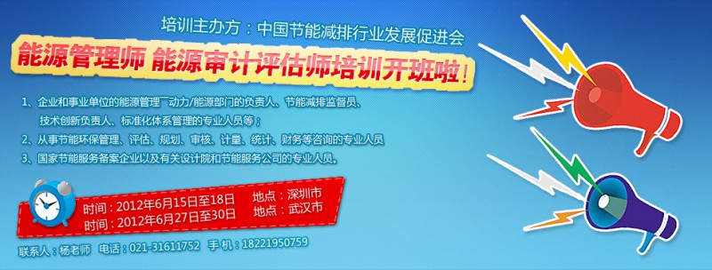 為深入貫徹《中華人民共和國節(jié)約能源法》,設(shè)立能源管理崗位;落實(shí)國務(wù)院《十二五”節(jié)能減排綜合性工作方案》的通知(國發(fā)〔2011〕26號)精神,實(shí)行能源審計(jì)制度,開展能效水平對標(biāo)活動,建立健全企業(yè)能源管理體系,擴(kuò)大能源管理師試點(diǎn)的要求。及《國家中長期人才發(fā)展規(guī)劃綱要(2010-2020年)》重大人才工程要求,在能源資源領(lǐng)域,每年培訓(xùn)100萬名高層次、急需緊缺和骨干專業(yè)技術(shù)人才,以此來提高專業(yè)技術(shù)人才創(chuàng)新能力,構(gòu)建分層分類的專業(yè)技術(shù)人才繼續(xù)教育體系,改善基層專業(yè)技術(shù)人才職業(yè)發(fā)展空間。針對我國目前缺少能源管理、能源審計(jì)和節(jié)能評估方面的專業(yè)技術(shù)人才的現(xiàn)狀,我會決定舉辦“能源管理師、能源審計(jì)評估師(中/高級)培訓(xùn)班”。現(xiàn)將通知如下: