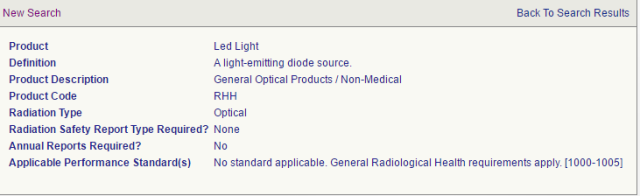 下面是在FDA官網(wǎng)上對LED燈產(chǎn)品的查詢結(jié)果: