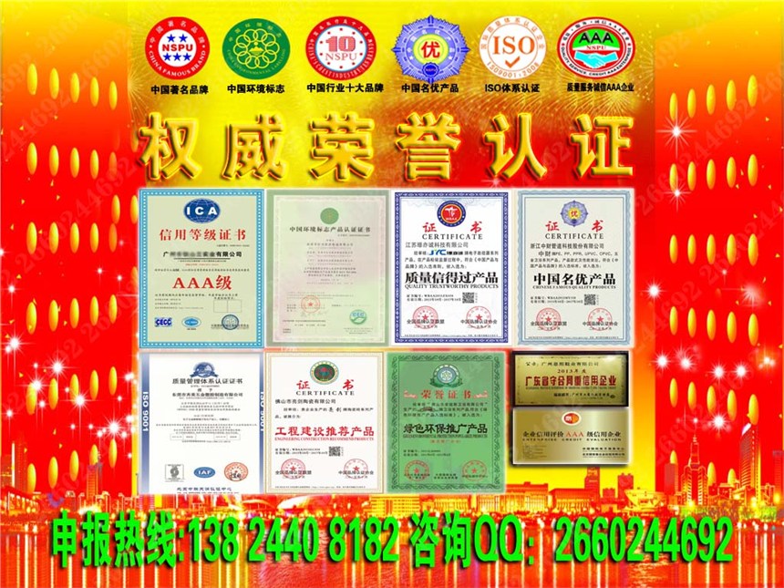 ⑤《綠色環保推廣產品》 ⑥《中國XX暢銷品牌(產品)》
