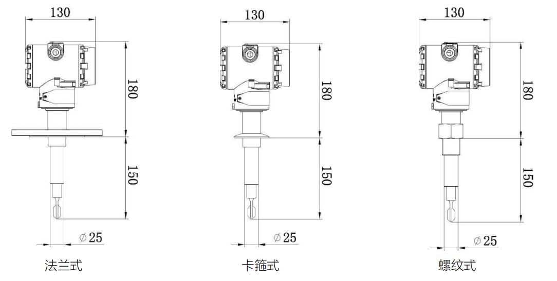 ■ 調整功能:零點、滿量程點可從通過外殼頂部三按鍵進行就 地調整或者可利用組態軟件進 行遠程調整