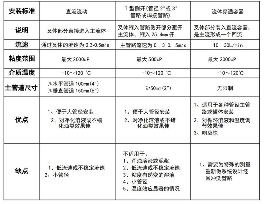 為了保證密度計能夠測量準確和顯示穩定,被測介質流速不得大于 1m/s,安裝密度計的位置盡量遠離泵,距離最好大于5m;當流速大于1m/s 時,采用擴徑安裝,流速每增加1m, 安裝密度計的管路直徑擴大1.5倍,儀表前需有≥600mm的直管段,儀表后需有≥300mm 的直管段,保證流體在流過叉體時處于層流狀態。
