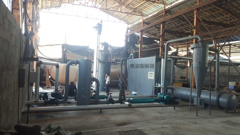 化學式描述裂解的轉化過程。但不管何種成份,裂解的產物與氣化氣體的成份相似,所以焦油裂解對氣化氣體質量沒有明顯影響,只是數量有所增加。對大部分焦油成份來說,水蒸汽在裂解過程中有關鍵的作用,因為它能和某些焦油成份發生反應,生成CO和H2等氣體,既減少炭黑的產生,又提高可燃氣的產量。例如,萘在催化裂解時,發生下述反應: