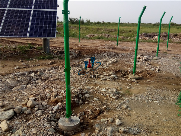 光伏發電站圍欄是一種新型的圍網,采用優質低碳鋼絲作為原材料,表面浸塑具有日久抗腐蝕、抗紫外線不怕雨淋的特點。這種工藝有無需模具、加工成本低、成型容易、可加工各種外形等特點被廣范使用。是專門為光伏電站設計的防護設備,主要是用在光伏電站各個區域的防護和隔離.它有效防止了變電站內外的人身安全和變電器等設備的防盜,是變電站專用的防護產品。