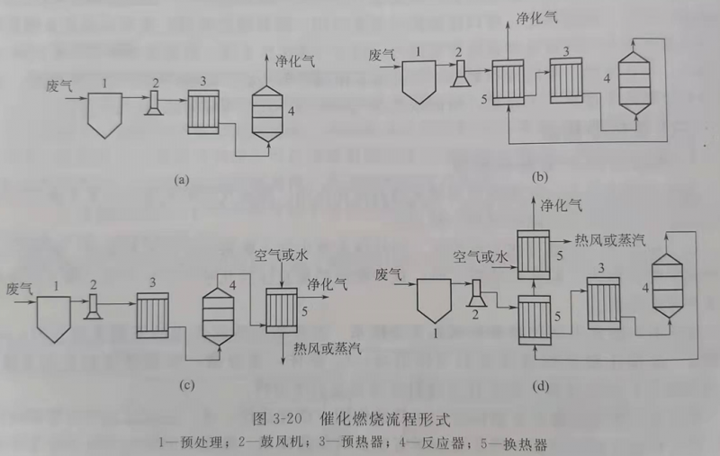 (3)催化燃燒反應  催化燃燒實際上是徹底的催化氧化,即在氧化催化劑的作用下,將廢氣中的可燃組分或可高溫分解組分徹底氧化成為CO2H2O,使氣體得到凈化。