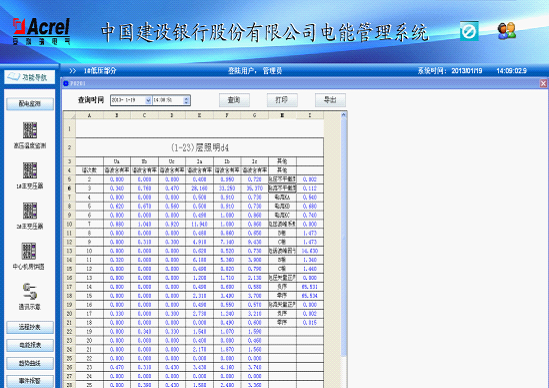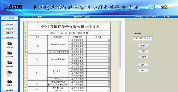 報表具有自由設置查詢時間實現日、月、年的電能統(tǒng)計,數據導出和報表打印等功能。