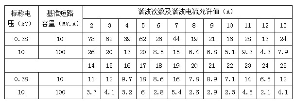 表2:注入電網公共連接點的諧波電流允許值:引用于(GB/T14549-1993)