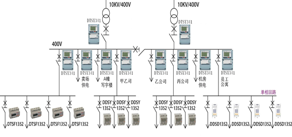 而對于一個園區內涉及到多個單位企業多棟公寓樓的情況,每個公寓樓或者單位的總電表應采用壁掛式多功能電能表做為關口表。