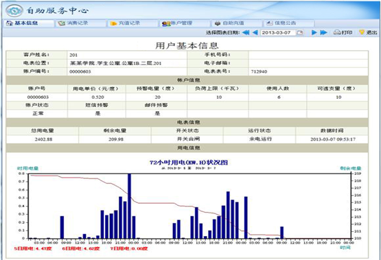 宿舍公寓物業電能收費系統通過在各用電點配置智能儀表,并運用后臺管理軟件,使每個用戶能夠隨時查詢各自的用電情況,管理方能夠提前收取電費,每個用戶預存的電費用完自動斷電。