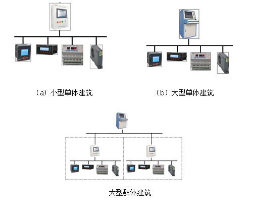 安科瑞電氣股份有限公司生產研發的電氣火災監控系統主要包括:Acrel-6000電氣火災監控設備和ARCM系列電氣火災監控探測器兩大部分組成。根據工程項目的大小不同,給出了適用于各類不同的系統解決方案,以達到更優、更好的目標。一般我們分為:小型單體建筑;大型單體建筑;大型群體建筑。圖1中給出了各類型項目的基本系統結構圖。