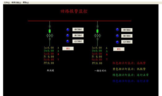 系統(tǒng)提供簡單、易用、良好的用戶使用界面。采用全中文界面,CAD圖形顯示配電系統(tǒng)電氣一次主接線圖,顯示配電系統(tǒng)設(shè)備狀態(tài)及相應(yīng)實時運行參數(shù),畫面定時輪巡切換;畫面實時動態(tài)刷新;模擬量顯示;開關(guān)量顯示;連續(xù)記錄顯示等,通過畫面顏色的變化(紅色表示合閘狀態(tài)、綠色表示分閘狀態(tài))可以看到各回路的分合閘狀態(tài)。