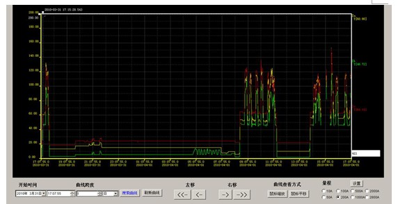 Acrel-3000電能管理系統(tǒng)提供了實時曲線和歷史趨勢兩種曲線的分析界面,通過調(diào)用相關(guān)回路實時曲線界面分析該回路當前的負荷運行狀況。如通過調(diào)用某配出回路的實時曲線可分析該回路的電氣設(shè)備所引起的信號波動情況。系統(tǒng)的歷史趨勢即系統(tǒng)對所有已存儲數(shù)據(jù)均可查看其歷史趨勢,方便工程人員對監(jiān)測的配電網(wǎng)絡(luò)進行質(zhì)量分析。