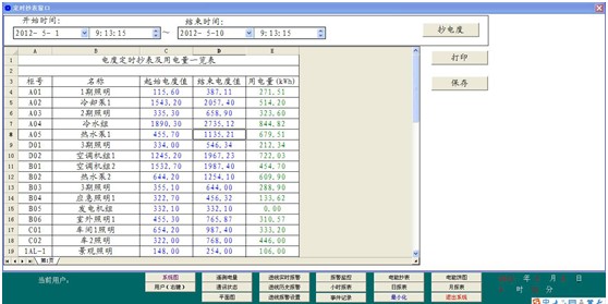 電能報表分為時報表、日報表、月報表三種報表。選擇要查詢的日期,可顯示每個時段的用電量,顯示每個時段用電量的報表對比柱狀圖,方便管理員查看分析。