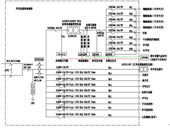 帶絕緣監視及故障定位的IT系統在手術室應用示意圖